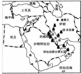 A、①② B、②③ C、①④ D、③④81. 日本是世界汽车制造业强国,其中近一半出口到海外各国,读日本汽车工业分布示意图,完成问题。(1)、日本汽车工业主要分布在( )A、太平洋沿岸 B、日本海沿岸 C、北部平原地区 D、四国岛(2)、日本汽车工业如何分布考虑的主要条件是( )A、交通便利 B、环境优美 C、降水丰富 D、矿产资源丰富82. 西亚地区航空业发达,有多条连接全球各地的航线。为增加上座率、避免长距离飞行,一些航空公司常采用中转联程的运输方式,即旅客可先到达西亚地区的机场,再换乘另一架飞机前往目的地。图为西亚地区主要国际枢纽机场位置示意图。据此完成问题。(1)、西亚地区航空业发达的主要优势条件包括( )①全年气候湿润,风景优美如画