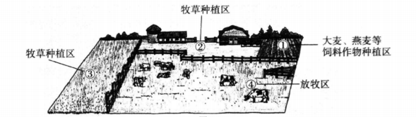 图示意欧洲西部某乳畜农场,当④围场放牧乳牛时,②③围场关闭休养;当②③放牧乳牛时,④围场关闭休养。