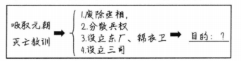 A、①③ B、①④ C、②③ D、②④22. 在学习“明朝的统治”一课时,小历画了如下思维导图,其中“?”处最适合填( )A、施行仁政,笼络民心 B、分化事权,强化皇权 C、改革官制,提高效率 D、精简机构,缓解矛盾23. 勤劳智慧的中国人民创造了辉煌灿烂的科技文化,如果要了解17世纪我国手工业发展的情况,首选的科技著作是( )A、《梦溪笔谈》 B、《本草纲目》 C、《农政全书》 D、《天工开物》24. 据统计,仅在明朝永乐年间,与郑和有关的东南亚及非洲国家使节来华共三百余次,其中有三位国王在率团访问期间病逝于中国,他们在遗嘱中表示要将自己葬于中国。这反映了( )A、明朝长期推行对外开放的政策 B、明朝继承了历代王朝处理周边关系的方式 C、远洋航行有力打击了殖民侵略 D、郑和下西洋增进中国与亚非国家友好往来25. 阶级斗争是推动历史发展的动力之一。为佐证这一观点,适合选择的历史人物有( )A、①② B、①③ C、②④ D、③④26. 乾隆二十二年(1757年),清廷规定外国商船“将来只许在广东收泊交易,不得再赴宁波。如或再来,必令原船返掉至广,不准入浙江海口。”材料反映了清廷正在( )A、镇压白莲教起义 B、缓解财政危机 C、禁止海外贸易 D、强化闭关锁国27. 读懂文献史料是学习历史的必备技能。对于下列文献史料,解读正确的有( )守国之道,惟在修德安民。民心悦,则邦本得面边境自固,所谓“众志成城”者是也。 ——《清圣祖实录》卷一五一①关注出处:史料反映了清朝统治者的思想