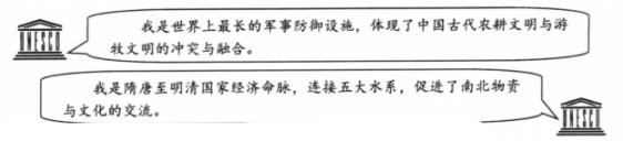 材料一:世界遗产是指对全人类具有突出普遍价值的文化和自然遗产。中国在世界遗产名录中的遗产数量排名第一位。下列是两个世界文化遗产的介绍: