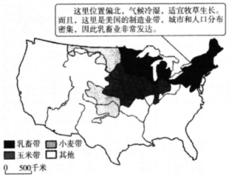 ④缩短运输距离A、①② B、②③ C、③④ D、①④80. 美国的农业生产充分利用不同区城的条件,实现了地区生产的专业化。图示意美国本土农业带的分布。据此完成问题。(1)、根据图中注释可知,影响乳畜带分布的主要因素是( )A、地形、市场 B、水源、政策 C、气候、市场 D、地形、政策(2)、美国农业地区专业化生产,便于( )①推广先进的生物技术和耕作技术