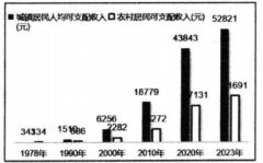 A、①② B、①③ C、②④ D、③④19. 下图展示了我国城乡居民人均可支配收入的变化,这些变化体现了( )A、改革开放促进城乡居民生活水平提高 B、十一届三中全会使人们思想观念解放 C、五大新发展理念改变了城乡居民生活 D、改革开放促进居民消费结构不断优化20. 我国宪法规定:“各少数民族聚居的地方实行区域自治,设立自治机关,行使自治权。各民族自治地方都是中华人民共和国不可分离的部分。”这一规定( )①阐述了我国民族问题的历史特点
