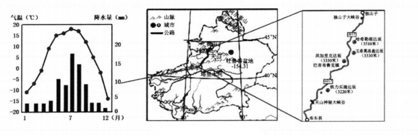 (1)、据图可知,独库公路( )A、沟通新疆东西,横穿天山 B、深处我国西北内陆,远离海洋 C、线路笔直,非常容易驾驶 D、跨越多个温度带,景观多变(2)、每年10月至次年6月是独库公路的“冬眠期”,禁止车辆通行,原因在于这里冬季( )A、降水多,洪涝灾害多发 B、炎热干旱,水补给困难 C、气温低,路面积雪严重 D、台风频繁,摧毁建筑物(3)、库车是古丝绸之路上的一个重要的绿洲小镇,自驾游爱好者夏季在这里可能会看到( )①成群的雪域牦牛