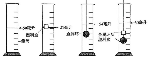 29. 学习了量筒的使用后,小金同学利用量筒来测量某矿石的体积,但是由于该固体体积较大,无法直接放入量筒中,因此,小金使用了以下的方法(如图),步骤为: