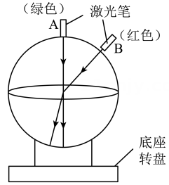 ①;②;③。15. 现代科技正试图用“人造眼球”和“人造耳蜗”这样的仿生奇迹,来弥合感官障碍与世界之间的鸿沟。其实他们的原理都是将声音或光的刺激通过仿生技术转化为电信号刺激相应的神经,从而代替眼球与耳的功能。(1)、声音是以形式传播的。(2)、无论是人造眼球还是人造耳蜗,最终都将信息传递至 , 才能在相应区域形成视觉或听觉。16. 探究光的反射与折射规律时,将水注入容器中,再滴入牛奶并搅拌均匀,如图所示,其中A为绿色激光笔,B为红色激光笔。(1)、接着打开位于透明容器上部正中央的绿色激光笔A ,并使绿光垂直照射到0点,该束绿光充当 , 但此时无法看见液面上方的光束,为了显示光路,你将采取的办法是。(2)、打开右侧的激光笔B,此时可以观察到光从空气斜射入水中的过程中,光既能发生折射,也能发生反射。当测得入射光线与水面的夹角为60°时,反射角等于°,折射角入射角(填大于、小于或等于)。随后再沿透明容器的外表面顺时针移动右侧激光笔B,可以观察到折射光逐渐远离法线,由此可以得出的结论是。(3)、慢慢转动底座转盘,会观察到入射光线、反射光线、法线重合为一条直线的现象,即可说明.17. 某科学兴趣小组用如图所示装置研究平面镜成像特点,探究像距与物距关系时的实验步骤如下:①在水平桌面上铺上白纸,将玻璃板竖立在白纸中间位置,记下玻璃板的位置;