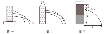 【探究实验】经过思考后,小瑞做了如图三所示实验,其中h 表示小孔在水中的深度,v表示水流从小孔水平射出的速度,H表示小孔离地的高度,s表示水流射程(小孔到落点的水平距离)。得到了如下的实验结果。