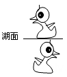 3. 一只小鸭子浮在平静的湖面上,能正确表示小鸭和它在水中所成的倒影的是( )A、B、