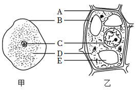 (1)、细胞学说揭示了细胞是生物体结构和的基本单位。(2)、魏尔肖提出“一切细胞来自于细胞”,说明新细胞是由原来的细胞产生的。(3)、结合细胞学说的发展史,以下观点正确的有____。(可多选)A、科学的发展离不开技术的支持,技术可以促进科学发展 B、胡克将细胞壁当成了细胞,他的发现没有任何科学价值 C、细胞学说是以科学家们的研究为基础,运用观察、分析、归纳等方法形成的 D、经过200年的发展,细胞学说已非常完善,因此不需要再发展10. 从发现细胞到细胞学说的建立经历了几代科学家的坚持与努力。(1)、如图所示是胡克利用自制显微镜下观察到的“细胞”,其实是软木细胞的(填结构名称)。(2)、小希同学在整理有关细胞学说内容时写道:一切生物都是由细胞构成的。你认为他整理的正确吗?请判断并说明理由。11. 疟疾是由一种叫疟原虫的单细胞动物引起的,黄花蒿茎叶(如图甲)中提取的青蒿素可以治疗疟疾。图乙分别为疟原虫和黄花蒿细胞模型图,请据图回答问题:(1)、图乙中(选填“A”或“B”)表示黄花蒿叶肉细胞。(2)、青蒿素能治疗疟疾,是因为它可破坏疟原虫细胞结构中的 , 从而阻断营养物质进出,使疟原虫较快出现氨基酸饥饿,最终死亡。12. 如图为动物细胞和植物细胞的结构示意图 。请据图回答:(1)、甲 、 乙两图中, 可能是熊猫体细胞的是(填“甲”或“乙”)图。(2)、图中内含遗传物质的细胞结构是【】 (填字母), 西瓜汁来自于植物 细胞的(填细胞结构名称) 。(3)、松树之所以长得高大而不倒塌, 这与细胞结构中的【 】(填字母)有关。(4)、“龙生龙, 凤生凤, 老鼠生来会打洞”, 说明生物具有 的基本特征。三、实验与探究题