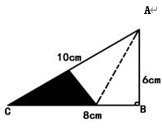 2、一个直角三角形的三条边长分别为10厘米,8厘米,6厘米,把最短的边对折和斜边重合(如图).求阴影部分的面积是平方厘米.