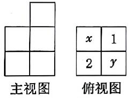 1、由若干个相同的小正方体搭成的一个几何体的主视图和俯视图如图所示,俯视图的方格中的字母和数字表示该位置上小正方体的个数,则x+y=.
