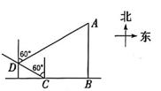 3、一艘货轮从小岛A 正南方向的点B 处向西航行30km到达点C 处,然后沿北偏西60°方向航行20km到达点 D 处,此时观测到小岛A 在北偏东60°方向,则小岛A 与出发点B 之间的距离为( )A、 B、 C、 D、