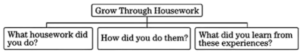 9、 假期是一个锻炼生活技能、享受家庭时光的好时机,许多同学都利用假期时间学习承担力所能及的家务劳动。假如你是李华,你校英语社团本周的分享会主题为"Grow Through Housework",请以此为题并根据以下思维导图的提示用英语写一篇短文,向社团成员分享你假期的家务经历及收获。