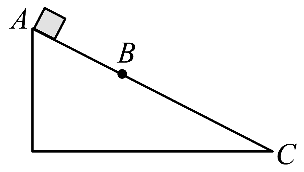 11. 关于自由落体运动,下列说法错误的是( )A、树叶在空中的飘落是自由落体运动 B、物体刚下落时,速度和加速度都为零 C、自由落体运动在第1s内、第2s内、第3s内的平均速度大小之比是1:3:5 D、自由落体运动在第1s内、第2s内、第3s内的位移之比是1:4:912. 将一个物体在t = 0时刻以一定的初速度竖直向上抛出,t = 0.8s时刻物体的速度大小变为8m/s(g取10m/s2),则下列说法正确的是( )A、物体一定是在t = 3.2s时回到抛出点 B、t = 0.8s时刻物体的运动方向可能向下 C、物体的初速度一定是16m/s D、t = 0.8s时刻物体一定在初始位置的下方13. 如图所示,小球从竖直砖墙某位置由静止释放,用频闪照相机在同一底片上多次曝光,得到了图中1、2、3、4、5所示小球在运动过程中每次曝光的位置。连续两次曝光的时间间隔均为T,每块砖的厚度为d,根据图中的信息,下列判断正确的是( )A、位置1是小球释放的初始位置 B、小球做匀加速直线运动 C、小球下落的加速度为 D、小球在位置3的速度为14. 物体沿一直线运动,在时间内通过的位移为 , 它在中间位置处的速度为 , 在中间时刻的速度为。可知和的关系为( )A、当物体做匀加速直线运动时, B、当物体做匀减速直线运动时, C、当物体做匀速直线运动时, D、当物体做匀速直线运动时,15. 质点做直线运动的位移x与时间t的关系为(各物理量均采用国际单位制单位),则该质点( )A、第内的位移是 B、第末的速度是 C、任意相邻的内位移差都是 D、任意内的速度变化量都是16. 如图所示,一个滑块从固定斜面顶端A由静止开始沿斜面向下做匀加速直线运动到达底端C,已知 , 则下列说法正确的是( )A、滑块到达B、C两点的速度之比为 B、滑块到达B、C两点的速度之比为 C、滑块通过AB、BC两段的时间之比为 D、滑块通过AB、BC两段的时间之比为