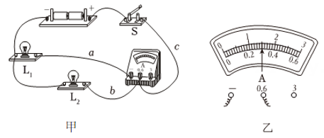 17. 如图甲是“研究并联电路的电流特点”的实物连接图。(1)、电流表测量的是通过灯泡(填“L1”或“L2”)的电流。(2)、若电流表示数如图乙所示,则测出的电流是A。(3)、若要用电流表测量干路中的电流,且只允许移动其中一根导线,应将图甲中导线(选填“a”、 “b”或“c”)的右端改接在电流表的负接线柱上。18. 在如图甲所示的电路中,当闭合开关后,两个电流表指针偏转如图乙所示,则通过电阻和的电流分别为安、安。19. 如甲图电路,当开关s闭合后,电流表的指针偏转如乙图所示,其中a电流表测量的是通过(选填“电源”、“L1”或“L2”)的电流,通过L2的电流应为安。三、实验与探究题
