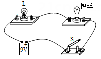 ②闭合开关S,小灯泡L发光,钨丝不发光;
