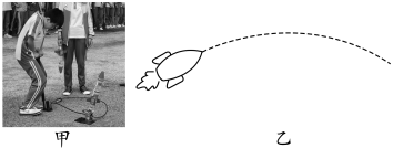1. 如图所示是2023年10月26日,搭载神舟十七号载人飞船的“长征二号系列”运载火箭在酒泉卫星发射中心点火发射,关于运载火箭升空的过程,下列说法中正确的是( )A、以地面为参照物,运载火箭是静止的 B、以运载火箭为参照物,地面是运动的 C、以发射架为参照物,运载火箭是静止的 D、以运载火箭为参照物,载人飞船是运动的2. 如图所示的飞天科幻画作品展示了火箭升空的画面.若在发射现场,关于火箭升空的过程,下列说法正确的是( )A、利用了力的作用是相互的 B、火箭及燃料质量保持不变 C、火箭不再受到重力的作用 D、火箭始终做匀速直线运动3. 中国空间站的天和核心舱在太空中运行时,下列说法正确的是( )A、核心舱不受重力作用 B、航天员在舱内处于失重状态,惯性消失 C、核心舱运动状态改变时,一定受到非平衡力 D、核心舱绕地球运动,所受合力为零4. “太空抛物” 实验中,王亚平抛出的 “冰墩墩” 做匀速直线运动,与地面上抛物轨迹弯曲相比,差异的主要原因是( )A、太空中物体质量变小 B、太空中没有重力和空气阻力 C、太空中力的作用效果消失 D、冰墩墩在太空中不受任何力5. 嫦娥五号返回舱从月球返回地球过程中,速度不断增大,其受力情况是( )A、只受重力 B、受非平衡力 C、受平衡力 D、不受力6. 中国空间站的太阳能电池板将光能转化为电能,下列与此能量转化形式相同的是( )A、火箭发动机将燃料内能转化为机械能 B、嫦娥五号着陆器利用反推发动机减速 C、太阳能热水器将光能转化为内能 D、祝融号火星车的蓄电池放电7. 如图甲所示是某同学在科技节中进行水火箭比赛的场景,水火箭向后喷水的同时向前飞行.如图乙所示是该同学发射的水火箭飞行的大致路径,请问下列说法正确的是( )A、水火箭向后喷水时,火箭对水有作用力,水对火箭没有作用力 B、火箭喷完水后,仍可以向前飞行一段距离是因为受到了空气给火箭向前的力 C、火箭在空中飞行时,受非平衡力 D、空中飞行的火箭,若它所受的力全部消失,它一定沿水平方向做匀速直线运动8. (多选)位于花溪区小河的航天研究院主要承担着中国运载火箭、载人飞船等航天产品固体发动机的研制、生产、试验任务.如图所示是某物理兴趣小组利用自制水火箭模拟真实火箭发射的轨迹,利用打气筒对水火箭打气,拉开气阀,水向下喷出,水火箭一飞冲天.在水火箭发射及上升过程中,下列说法正确的是( )A、水火箭到达最高点时速度为零 B、水火箭到达最高点时处于非平衡状态 C、水火箭能起飞是受到水对它向上的推力 D、水火箭上升过程中速度一直增大9. 中国空间站的天和核心舱在太空中匀速绕地球运动时,其运动状态(选填 “改变” 或 “不变”),原因是。10. 嫦娥三号月球车在月球表面行驶时,受到的重力约为地球表面的1/6,若其在地球表面质量为140kg,在月球表面质量为kg,重力约为N(g取10N/kg)。11. 火箭发射时,燃料燃烧产生的推力使火箭上升,说明力可以改变物体的 , 同时火箭对喷出的燃气有向下的力,燃气对火箭有向上的力,说明力的作用是。12. 某同学为研究“太空中物体运动与受力的关系”,设计了三组对比实验: