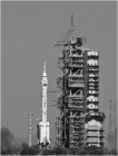 (3)、当水火箭竖直向上发射时,若无法直接测量水火箭发射的最大高度,这时可以测量水火箭从发射到落地的来间接反映发射的高低情况;(4)、制作水火箭会安装尾翼,主要作用是____(选填序号);A、增加水火箭的配重 B、为火箭提供更强的动力 C、保证火箭飞行的稳定性(5)、除上述猜想外,你认为还有哪些因素可能会影响水火箭的飞行距离:(写出一条即可)。15. 图甲是搭载神舟十四号载人飞船的长征二号F遥十四运载火箭发射时的场景,图乙是其示意图,O点表示重心,请在图乙中作出火箭加速上升过程中的受力示意图。(不计空气阻力)16. 阅读材料,回答问题。2023年10月26日,神舟十七号载人飞船在长征二号F遥十七运载火箭的托举下,从酒泉卫星发射中心点火升空,搭载着汤洪波、唐胜杰、江新林3名航天员奔向太空。长二F火箭与载人飞船的总质量约为500吨。如图所示,火箭点火升空时,降温系统向发射塔喷洒大量的水,顿时周围“白气”滚滚.之后,神舟十七号载人飞船成功对接于天和核心舱前向端口,形成三舱三船组合体,即空间站三个舱段、两艘载人飞船和一艘货运飞船。