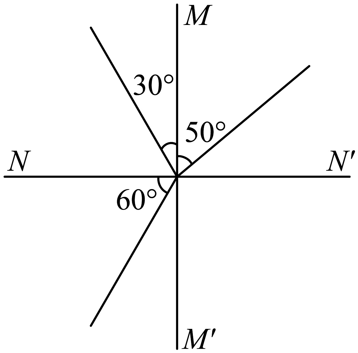 10. 下列事例中,控制噪声的方法与如图所示的标志相同的是( )A、在图书馆中禁止大声喧哗 B、在高速公路的两旁设置隔音屏 C、商场附近的居民楼安装双层玻璃 D、机场地勤人员戴防噪声耳罩11. 下列事例中,属于利用声传递能量的是( )A、倒车雷达利用超声波定位 B、医生用听诊器给病人诊断病情 C、利用次声波判断地震方位 D、利用超声波击碎人体内的结石12. 小明在阳台看到停在阳光下小汽车挡风玻璃很刺眼,这是光的( )A、折射 B、色散 C、镜面反射 D、漫反射13. 如图,一束光与镜面成30°角入射,以垂直纸面的直线为轴绕O点转动平面镜,使反射光线跟入射光线恰好垂直,则镜面应( )A、顺时针转动30° B、逆时针转动30° C、顺时针转动15° D、逆时针转动15°14. 如图所示,是小红同学检查视力时的情景,下列说法正确的是( )A、镜中视力表的像是实像 B、镜中视力表的像比视力表小 C、镜中视力表的像到她的距离为5m D、镜中视力表的像是由于光的直线传播形成的15. 如图所示是光在空气和玻璃两种介质中传播的情形,下列说法中正确的是( )A、NN'是界面 B、入射角等于30° C、折射角等于50° D、MM'的右边是玻璃二、填空与作图