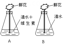 c.在A 和B 中各插上一支同样新鲜的玫瑰花(如图),放在相同的环境中,每隔12小时观察一次,并做好观察记录。