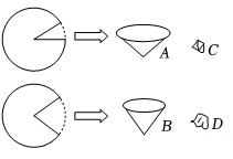 ①如图所示,小乐将两张相同的圆纸片,剪下大小不等的扇形,然后将留下的部分做成A、B两个锥角不同的纸锥,剪下的扇形纸片分别揉成C、D两个纸团