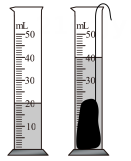 14. 某同学用量筒进行测量体积的实验。(1)、某次实验中他先俯视读出量筒内水的体积为150毫升,倒出一部分水后,仰视读出剩余水的体积为100毫升,则实际倒出的水的体积50毫升(填“大于”“小于”或“等于”)。(2)、用量筒测量小石块体积时,需要先在量筒中加入“适量的水”,再将小石块浸没在水中。这里“适量的水”是指能淹没石块,且石块浸没后(填“水不超过量程”或“水不溢出”)。该同学用正确的方法测得如图所示的不规则小石块的体积为10立方厘米。测该石块的体积时,量筒中加入的“适量的水”的范围是多少?于是他又进一步实验:用正确的方法测得石块不同方向放置时的高度,其中最高为4.0厘米,最低为1.5厘米。若他所用的量筒的量程为100毫升,分度值为1毫升,底面积为7平方厘米。则要测得该石块的体积,量筒中所加的“适量的水”的范围是毫升。(3)、某同学还想用上述方法测一枚大头针的体积,他先读出量筒内水的体积为V1 , 将一枚大头针轻轻地放入量筒内的水中后,读出水面所指示的体积为 V2 , 那么一枚大头针的体积就是V2-V1。你认为他的这种方案可行吗?并说明理由:。15. 以下是温度计的部分发明历程:(1)、如图甲,伽利略气体温度计的玻璃泡位于端(选填“A或B”);(2)、如图乙、丙,液体温度计中的水或酒精均已添加红色染料,其优点是;(3)、随着科技进步,人类发明了最低温度计,某研究性学习小组来到气象园,仔细观察最低温度计构造(图丁) 。在最低温度计酒精柱内,有一个黑色游标,当温度下降时,酒精收缩,因酒精柱顶的表面张力作用,指标随之移动,即向感应部分后退,当温度上升时,酒精柱上升,而游标因无外力推动仍留在原处,所以游标离感应部分较远的一端为在某一时段的最低温度。该温度计只标注部分刻度,请读出此时测量的最低温度为:。16. 某兴趣小组自制了如图甲、图乙两种简易温度计。甲温度计是在锥形瓶中装满混有少量红墨水的冷开水,乙温度计是在瓶内冷开水上方保留一部分空气,分别用带细玻璃管的橡皮塞密封。将锥形瓶浸没在水温可调节的加热水壶中,设置初始温度为40℃,待玻璃管内液面稳定后,用细橡皮筋在细玻璃管液面位置做标记。分别设置不同的温度,记录玻璃管内液面稳定后到标记处的距离。
