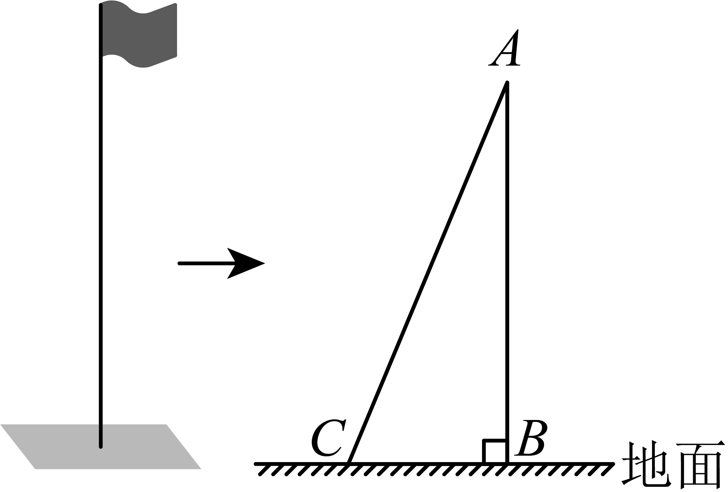 第二步,把绳子向外拉直,绳子的底端恰好接触地面的点C,再测量绳子底端C与旗杆根部B点之间的距离,测得距离为5米;