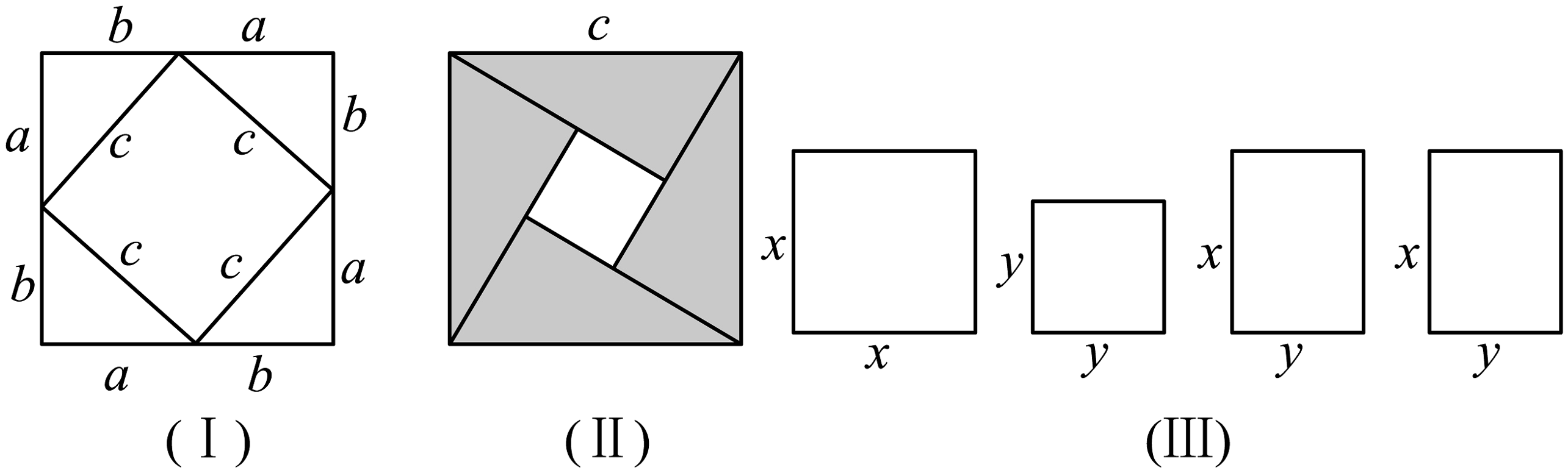 23. 在学习勾股定理时,我们学会运用图(Ⅰ)验证它的正确性;图中大正方形的面积可表示为: , 也可表示为: ,即由此推出勾股定理 , 这种根据图形可以极简单地直观推论或验证数学规律和公式的方法,简称“无字证明”.
