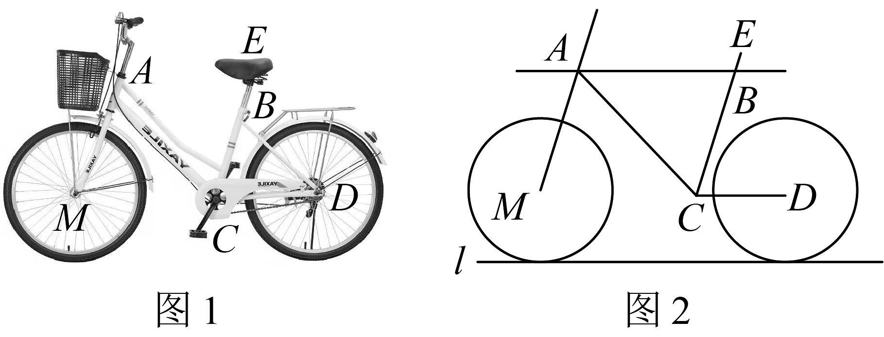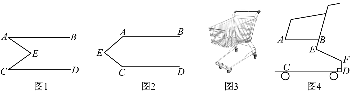 ()如图是超市购物车,图是其侧面示意图,已知 , , 测量得知 , , 求的度数.