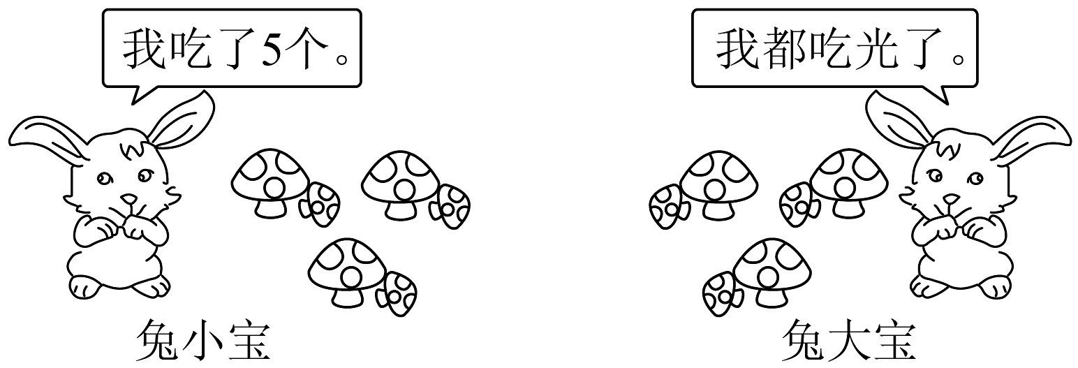 10. 兔小宝和兔大宝分到同样多的蘑菇,则( )。A、兔小宝剩下的蘑菇多 B、兔大宝剩下的蘑菇多 C、两只兔子都没有剩下蘑菇11. 在一个队伍中,小红排在第3,小明排在第10,小红与小明之间有( )人A、4人 B、5人 C、6人12. 下边的桃子表示( )。2+5=