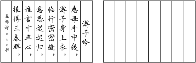 2. 小语同学想把明朝于谦的《石灰吟》收集到纪念册上,请参照左图的样式默写,做到正确规范、行款整齐,布局合理。3. 小英收集了一些红色诗歌,下列加点字读音完全正确的一组是( )A、初旬(xún) 獠牙(liáo) 擢素手(zhuó) 栖息(xī) B、扉页(fēi) 屐齿(jī) 模仿(mó) 矜持(jīn) C、锲而不舍(qiè) 翻箱倒柜(dǎo) 追悼会(diào) 泪潸潸(shān) D、藤蔓(wàn) 兴奋(xīng) 蓄养(chù) 旋转(zhuǎn)4. 小丽在誊抄诗歌时出现了一些错别字,请你选出字形完全正确的一组( )A、幼稚 皮靴 锤练 兴旺发达 B、苦刑 法庭 泠笑 目瞪口呆 C、安定 占据 彻底 声泪俱下 D、恰好 耽搁 慌凉 寂寞5. 请根据语境选择恰当的词语,表达我们对英雄的敬意。( )在历史的长卷中,英雄的身影永远闪耀:邓世昌在保卫国家的海战中,选择与军舰共存亡,____;赵一曼面对敌人的严刑拷打,坚贞不屈,最终____;黄继光在抗美援朝战场上,用胸膛堵住枪眼,____……他们以热血与生命,铸就了民族不朽的丰碑。