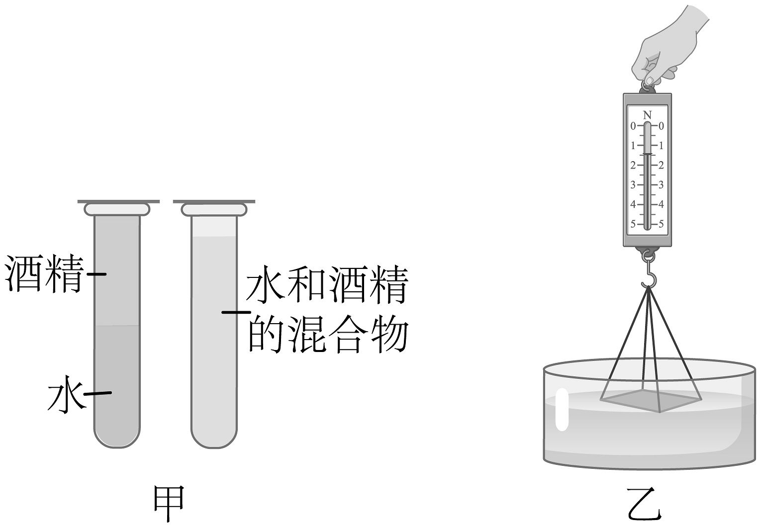 26. 在“比较不同物质吸热能力的情况”实验中,小明的实验装置如图甲乙所示:(1)、该实验除了图中的实验器材外,还需要用到的实验器材有:和。(2)、实验中应选用规格选填“相同”或“不同”的电加热器,可以通过比较选填“升高的温度”或“加热时间”来反映两种液体吸收热量的多少;(3)、实验结束,小明把实验数据绘制成如图丙所示,当A和B吸收相同的热量时,的温度升高较快,说明吸收热量的能力强以上两空均选填“A”或“B”。(4)、冬天,如果你想自制暖手袋,应选液体选填“A”或“B”作为供暖物质,其效果更佳;27. 小明设计了一组实验,如图所示,根据分子动理论相关知识回答问题:(1)、如图甲所示,先在试管内装上半管有色水,再从管上部慢慢注满酒精,用塞子塞紧管口,上下颠倒几次看到管中液面降低了少许,此现象说明分子间有;(2)、如图乙所示,小明用弹簧测力计把一块玻璃板拉出水面,在玻璃板离开水面前,小明会观察到弹簧测力计的示数将(填“变小”、“不变”或“变大”)。28. 如图所示,在试管内装些水,用软木塞塞住,加热使水沸腾,水蒸气会把木塞冲开。(1)、酒精灯燃烧,能转化为能;(2)、水的温度升高,水汽化产生高温高压的水蒸气,增加了试管内物质的内能;