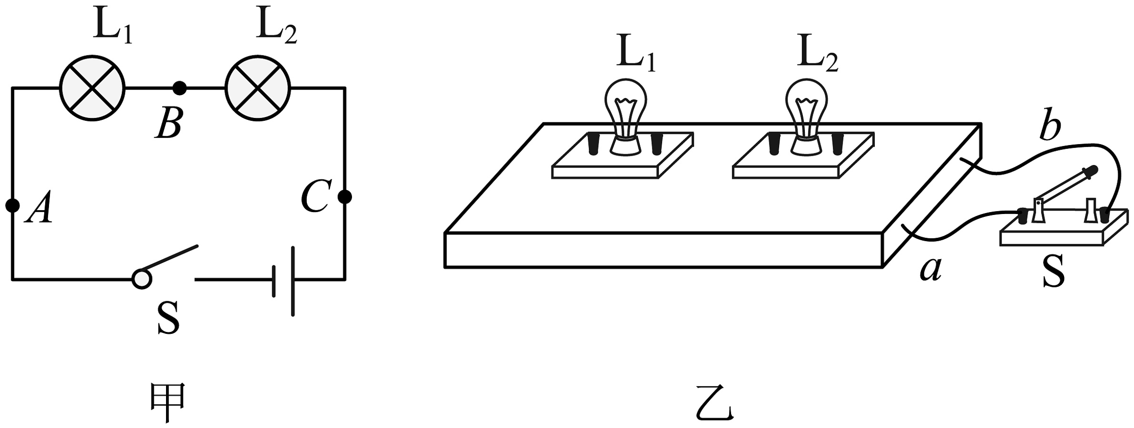 (3)、水蒸气冲开瓶塞的过程,能转化为能,这相当于四冲程内燃机的冲程。29. 下图所示是在探究“电荷间的相互作用规律”实验中的情景:(1)、小红同学用两根丝绸摩擦过的有机玻璃棒和两根毛皮摩擦过的橡胶棒,进行了如图所示的三次实验,根据实验现象可得出的结论是:同种电荷相互排斥,异种电荷相互;(2)、验电器的工作原理就是利用了上述中这一结论来工作的;(3)、若毛皮摩擦过的橡胶棒带负电,说明它的摩擦过程中(选填:“失去”或“得到”)了电子。30. 在“研究串联电路特点实验”中,物理小组设计了如图甲电路图。(1)、小明连接好电路后,闭合开关,两个小灯泡都能发光,任意取下其中一个小灯泡,可观察到另 一个小灯泡 (选填“发光”或“不发光”),以上现象说明了串联电路中各用电器具有 (选填“相互影响”或“不相互影响”)这一特点。(2)、同组的小华连接好电路后,闭合开关,发现L1、L2都不亮,他用手按一下L1 , L1、L2仍然都不 亮:按一下L2 , 两灯都亮,松开手两个小灯泡又不亮,则故障可能是 ( 选 填 “L1灯丝断 了”、“L2灯丝断了”、 “L1短路”或 “L2与灯座接触不良”)。(3)、调试好电路后,如图甲所示,将开关分别接在A、B、C三点,开关的作用 (选填“相同”或“不相同”),此时通过小灯泡L1和 L2的电流 (选填“相等”或“不相等”)。(4)、老师给同学们带来一个“盲盒”,如图乙所示,闭合开关时,两只灯泡都亮了,断开开关时, 两只灯泡都熄灭。小明说他只要拆下一个灯泡就能判断两者是串联还是并联,他的判断方法是:。四、简答与计算题(共3题;共18分)