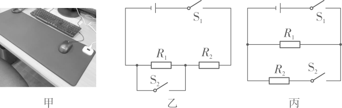 21. 电热桌垫在冬天很受欢迎(如图甲所示)。某校综合实践活动小组的同学探究了它的原理,查看说明书后发现:该电热桌垫由 12 V 电源供电,发热部分由 R1 和 R2 组成,调温挡有关、低温、高温三挡。已知乙、丙两图中 R1 阻值均为8Ω,R2阻值均为2 Ω。(1)、按如图乙所示的电路,当S1 闭合、S2 断开时,电热桌垫处于(填“关”“低温”或“高温”)挡。(2)、若该电热桌垫实际电路如图丙所示,现电热桌垫处于低温挡,则开关的状态为开关 S1闭合,S2(填“断开”或“闭合”)。三、实验与探究题