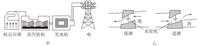 1. 炎热的夏天,小明将一瓶饮料放在泡沫箱中的冰块上,两者的温度随时间变化如图。下列说法正确的是()A、甲是冰块 B、0~t1内, 乙在吸收热量 C、t1后,两者不再发生热传递 D、t2后,两者的内能均为0焦2. 关于机械效率,下列说法正确的是( )A、机械效率越大,越省力 B、机械效率越大,做功越多 C、机械效率越大,功率越大 D、机械效率越大,额外功在总功中所占的比例越小3. 台州已成为发电大市,有多种发电方式。图甲为三门核电站发电流程图,图乙为温岭江厦潮汐发电原理图。下列关于两种发电方式说法正确的是A、核电站利用核聚变获得核能 B、发电机是将电能转化为机械能 C、潮汐发电主要是利用水的内能 D、涨潮和退潮时的能量转化形式相同4. 平板支撑是一种类似于俯卧撑的肌肉训练方法,可以有效塑造腰部、腹部和臀部的线条,如右图所示。能正确表示人在平板支撑时的杠杆示意图是( )A、