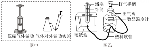 ②在喷水壶内加入少量的水,关闭出气阀,多次按压喷水壶的打气手柄后,观察并记录壶内温度。