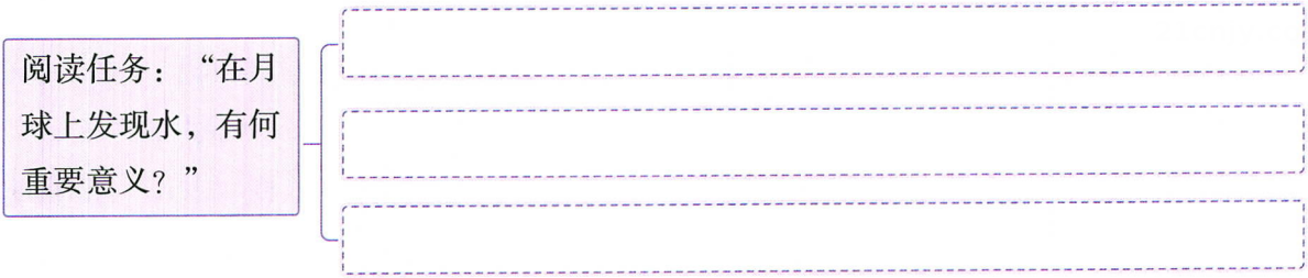 (1)、用提取关键信息的方法完成下面的阅读任务。(2)、下列对短文理解不正确的一项是( )。A、中国科学家通过对月壤的数据分析,得出了“月球上有水”的结论 B、“嫦娥五号”采样区探测到的水主要指矿物里的水分子或者羟基,可以直接饮用 C、第1自然段画线句子中的两个“大约”体现了说明文语言的准确性 D、第3自然段中的“其一”“其二”“其三”后面的内容不能互换位置,作者按照人们对事物的认识和利用的先后顺序有条理地说明了月球有水的现实意义(3)、画线语句运用了、的说明方法,这样写的好处是。 -
