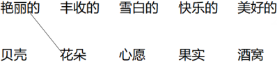 贝壳 花朵 心愿 果实 酒窝 (3)、小鸟给人们带来了什么呢?请你在文中找出来。(4)、你还听过谁唱歌?它又给人们带来了什么呢?唱着欢乐的歌,给人们带来、。