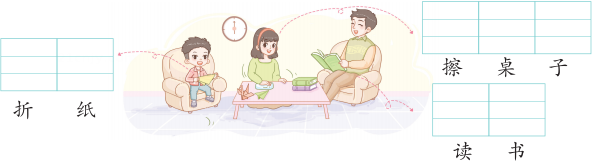 12、周末,“我们”一家在干什么?请你给词语注音。