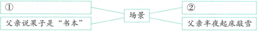(1)、短文围绕雪写了有关父亲的哪些场景?请概括并完成思维导图。(2)、细节蕴含情感。任选文中A、B两处中的一处,关注细节,写一写体会。①我选择处,我的体会是: