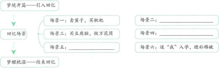 2、乐乐决定拍摄《父爱之舟》中的几个场景,请你帮忙将故事中的场景整理出来。