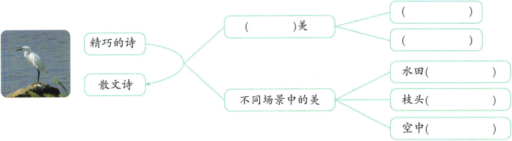 (1)、根据课文片段内容,将片段一补充完整。(2)、阅读片段二,仿照下面左图,补全“白鹭生活场景图二”。