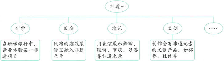 (2)、“乐来乐好”市民生活文化周中举行了“非遗民俗文化展演”活动,令人目不暇接。结合材料三,判断这场展演是属于哪种非遗打开方式?( )A、非遗+研学 B、非遗+民宿 C、非遗+演艺 D、非遗+文创(3)、结合三则材料,判断下列说法对错,用“正确”“错误”表示。①黄杨木雕、龙档、首饰龙、音乐喷泉……都是我们身边的“非遗”。