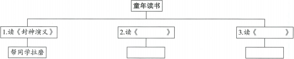 (1)、作者写了童年读书的几件事,请用简洁的语言概括事件,完成导图。(每个不超过10个字)