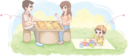 爸爸妈妈在下棋。