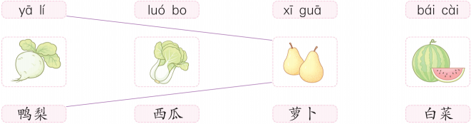 7、照样子连一连,并找出图中的蔬菜。