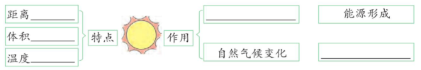 16、根据课文《太阳》的内容填空。(1)、本文介绍了及 , 说明它与人类 , 使我们懂得了太阳的 , 激发我们。(2)、用下面的思维导图来展示太阳的特点和作用。