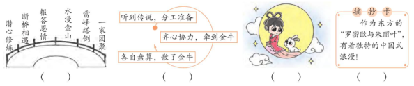 5、玲珑读了许多民间故事,并用画情节图、做阅读摘抄卡、画插图、摘抄他人评论等方式加以记录。请你猜猜玲珑读了哪些民间故事吧! (填序号)