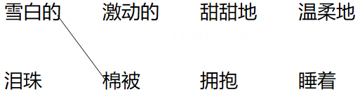 (1)、短文共有个自然段,第自然段写小麦苗感谢小雪花。(2)、根据短文内容,连一连。(3)、小雪花战胜了北风大汉的阻拦,飞到了哪里?请用横线在文中画出来。(4)、短文中“雪白的棉被”指的是( )。(填序号)A、被子 B、棉花 C、雪花(5)、小雪花又开始飞翔了,它会飞到哪儿,又会做些什么呢?请你想一想,写一写。 -