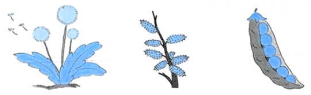 • 2、仔细观察图片,画面中有轻盈的蒲公英、带刺的苍耳,还有饱满的豌豆荚。请你选一种植物,写清楚它是如何传播种子的。