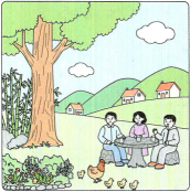 一母鸡,一群小鸡。
